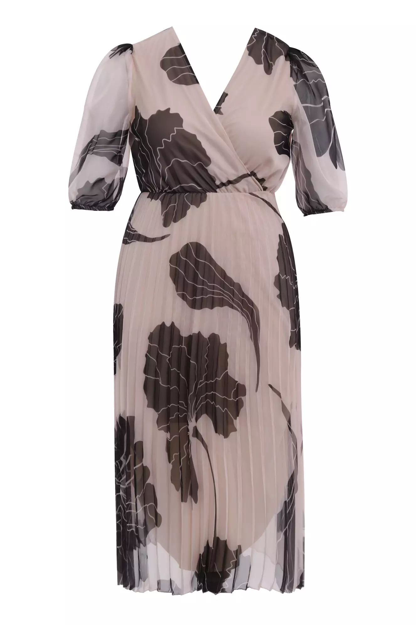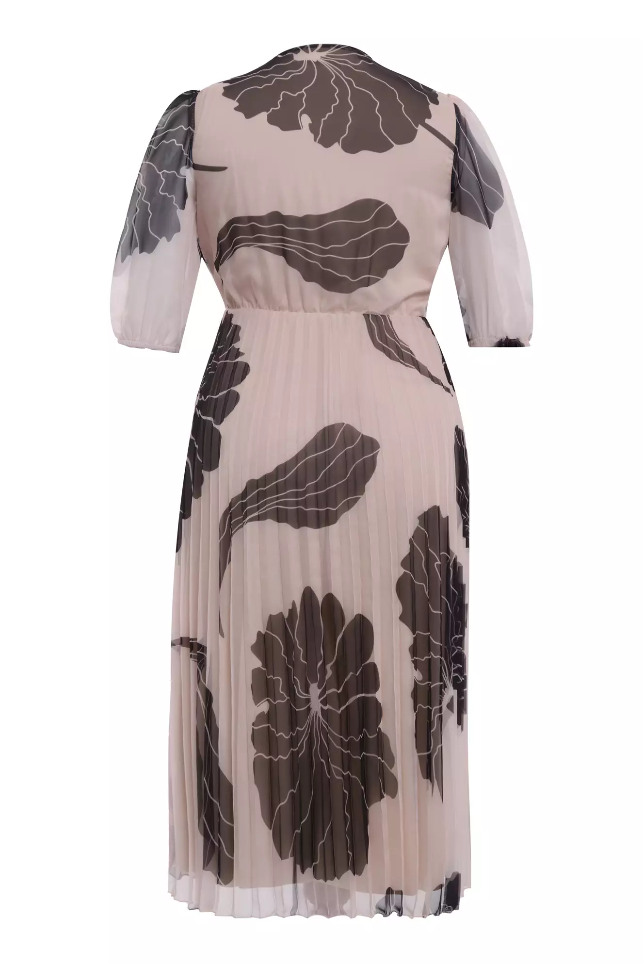 Printed Plus Size Chiffon 3/4 Sleeve Midi Dress