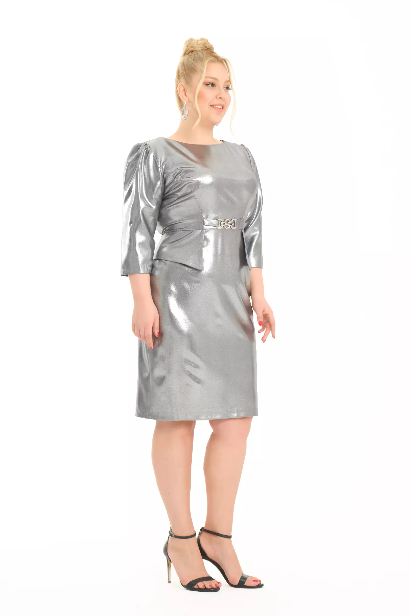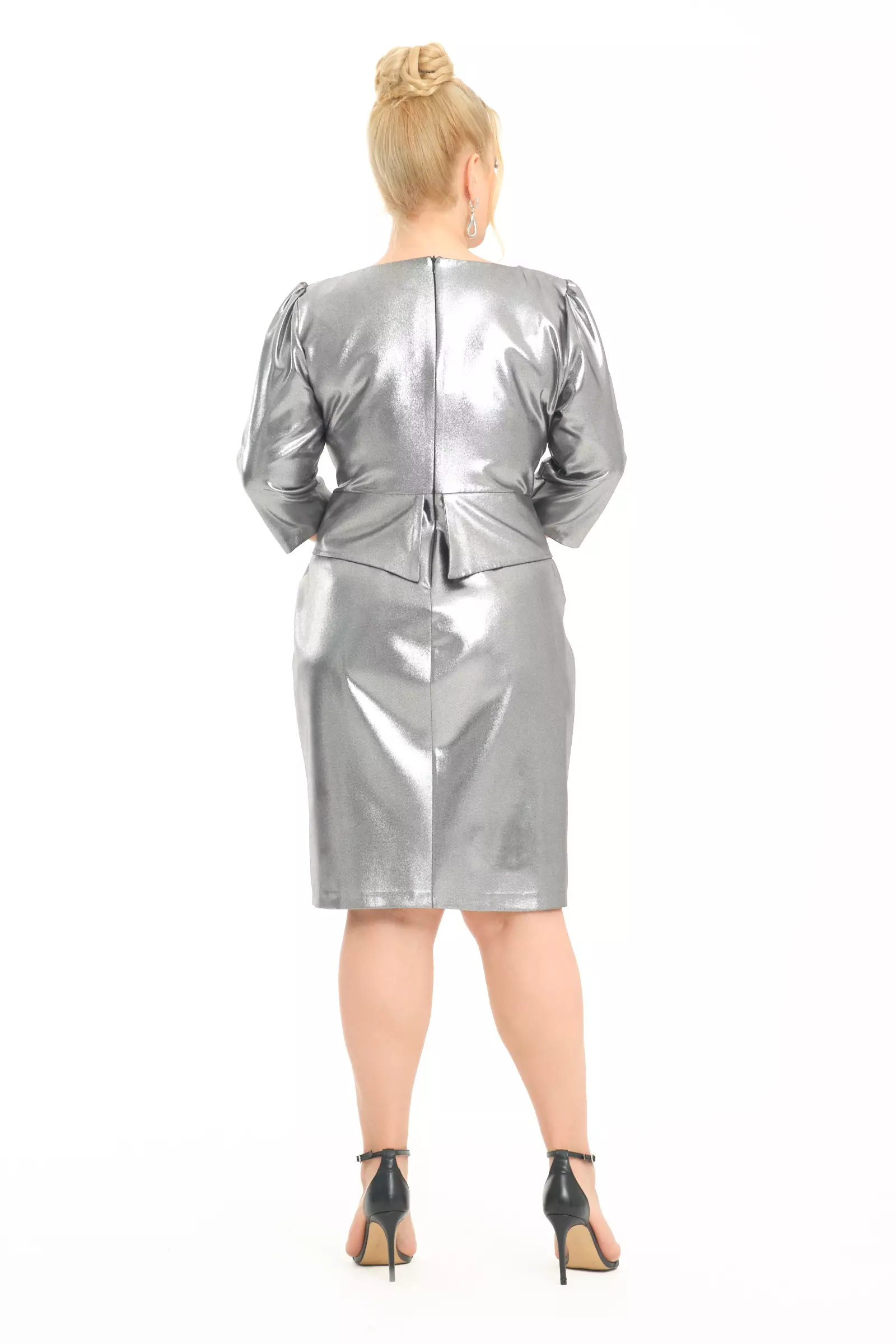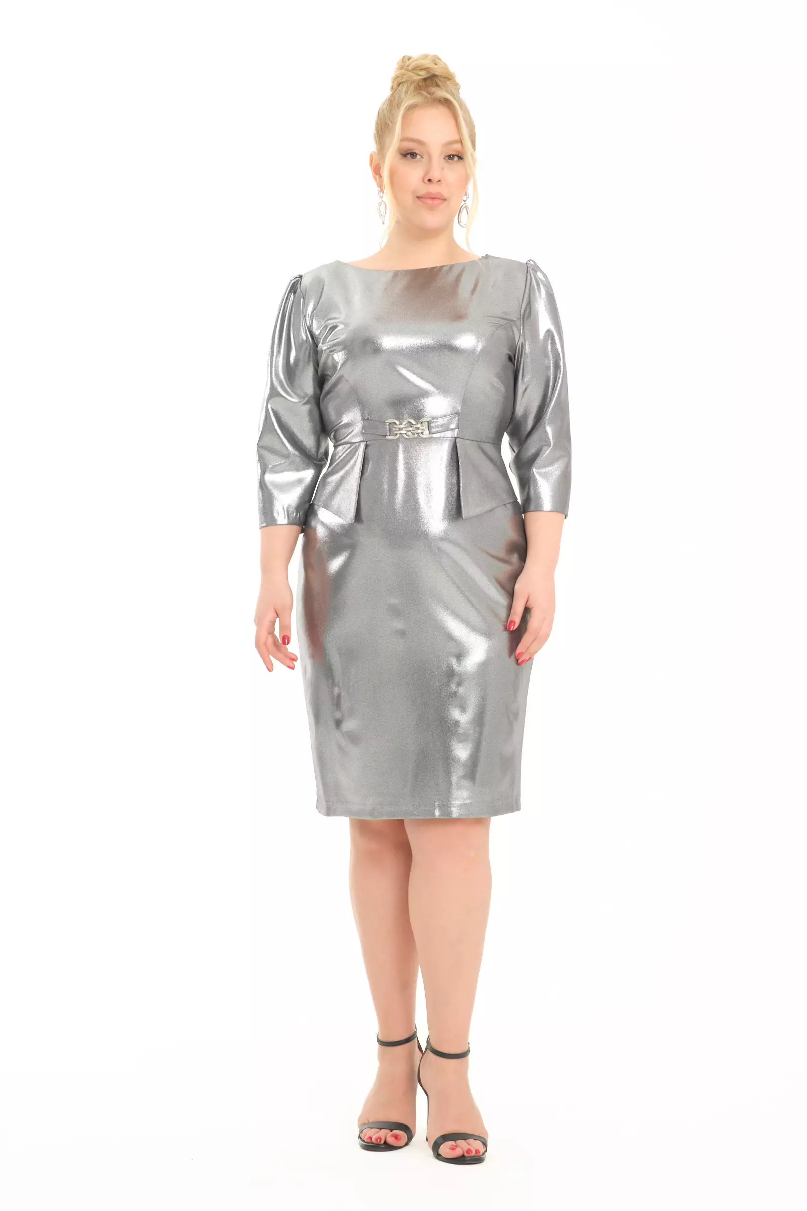 Silver plus size crepe short sleeve mini…Unit Code: 77690-028