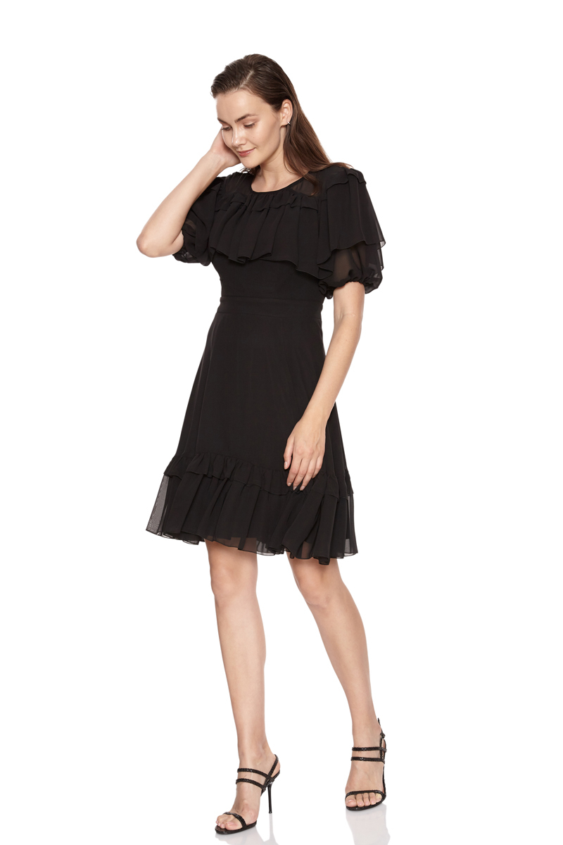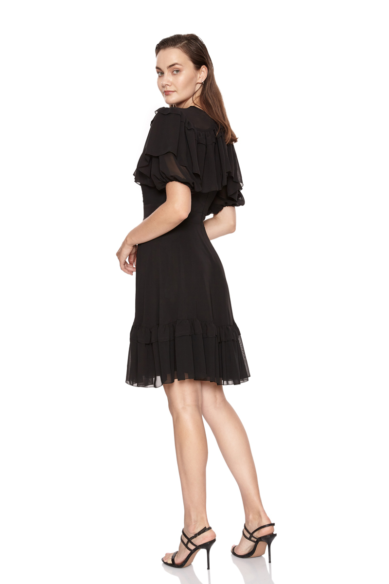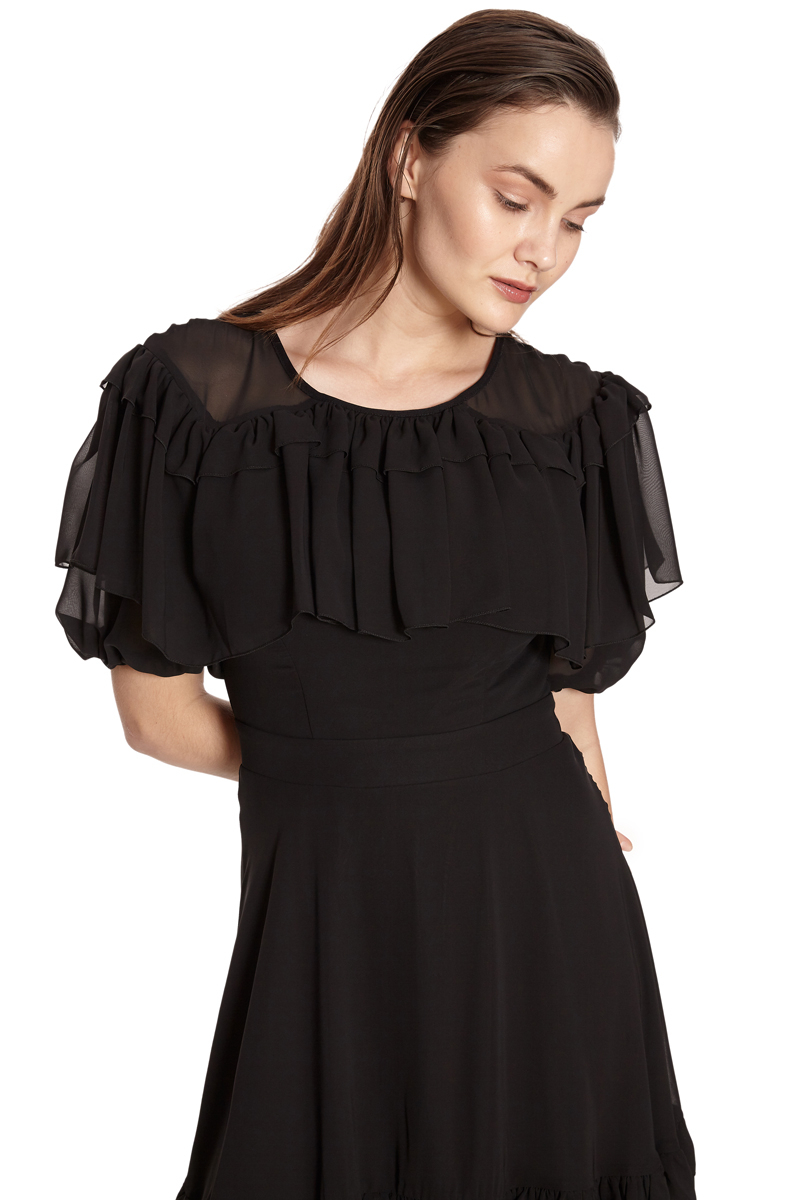 Black chiffon short sleeve midi dressUnit Code: 74651-001