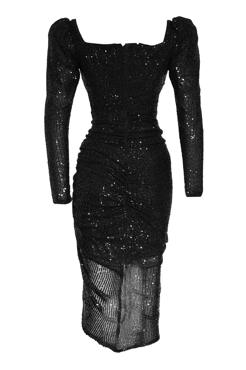 Black Stamp Sequins Long Sleeve Maxi Dress