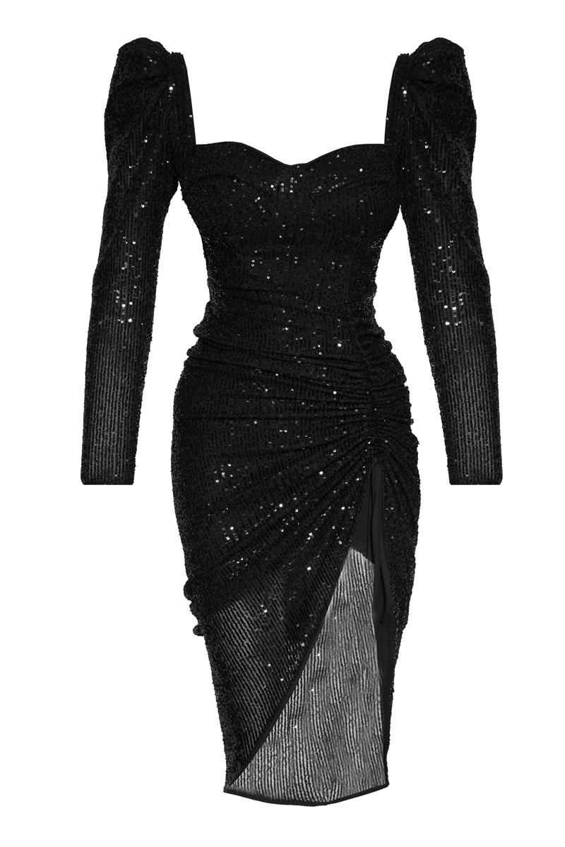 Black stamp sequins long sleeve maxi dre…Unit Code: 965029-001