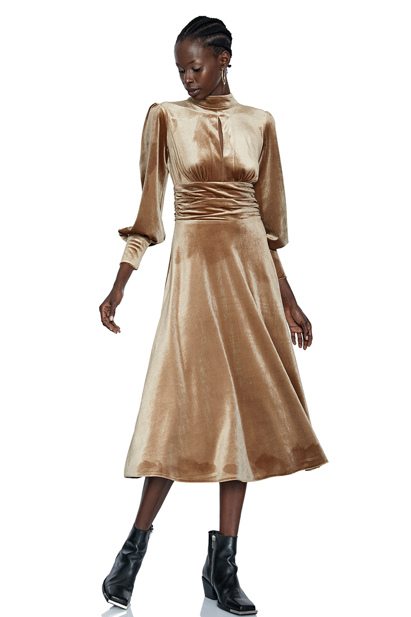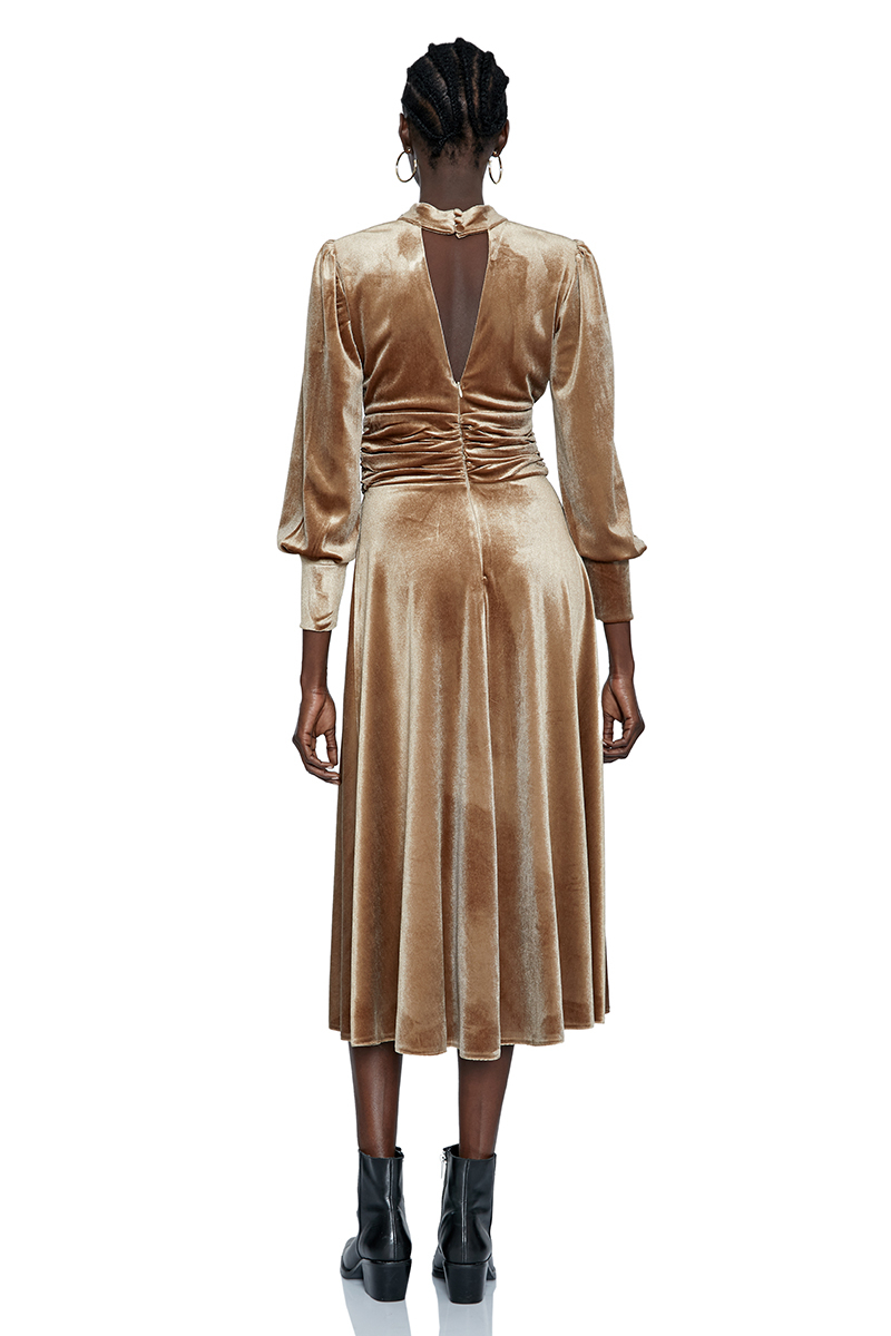 Camel velvet long sleeve midi dressUnit Code: 964811-049