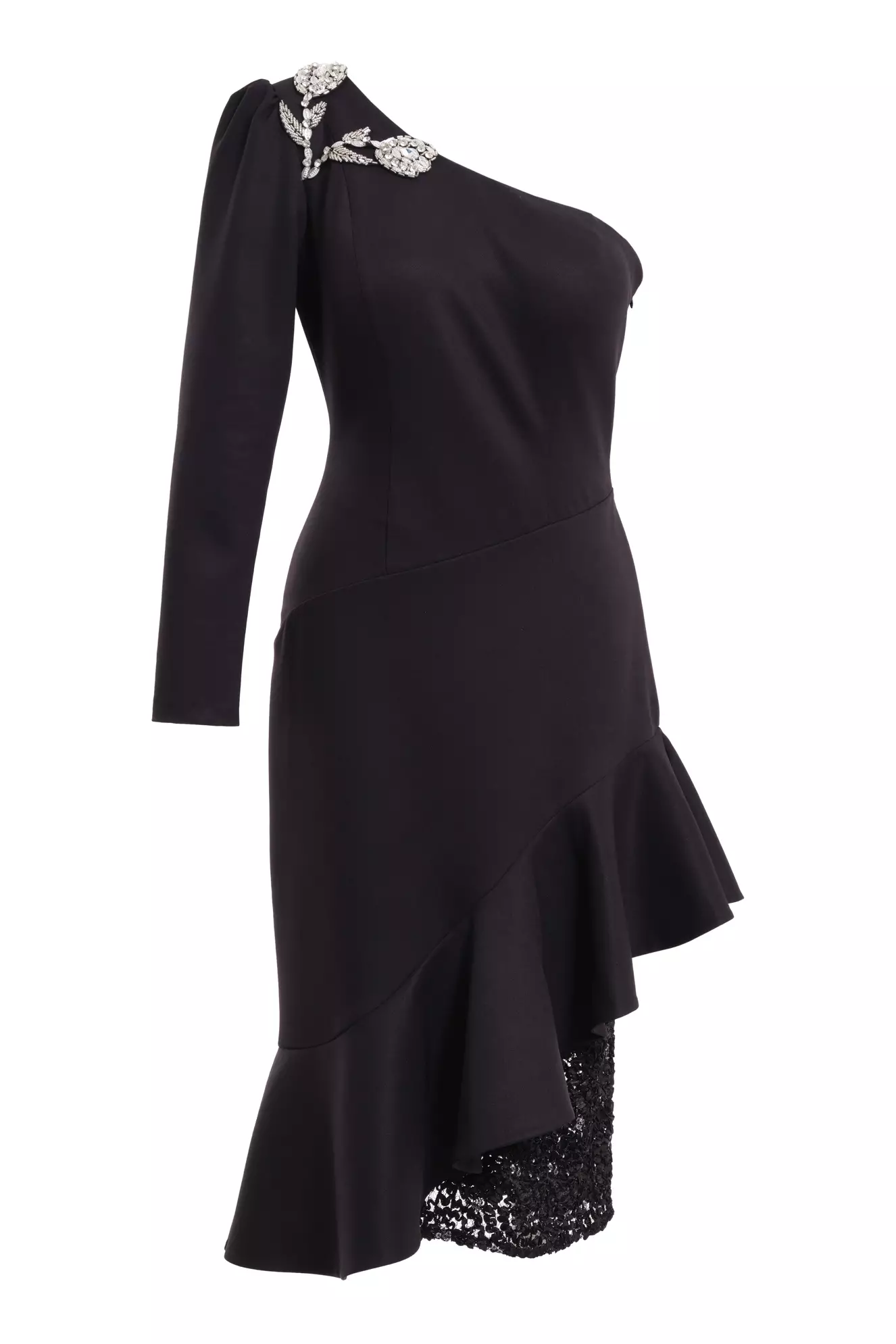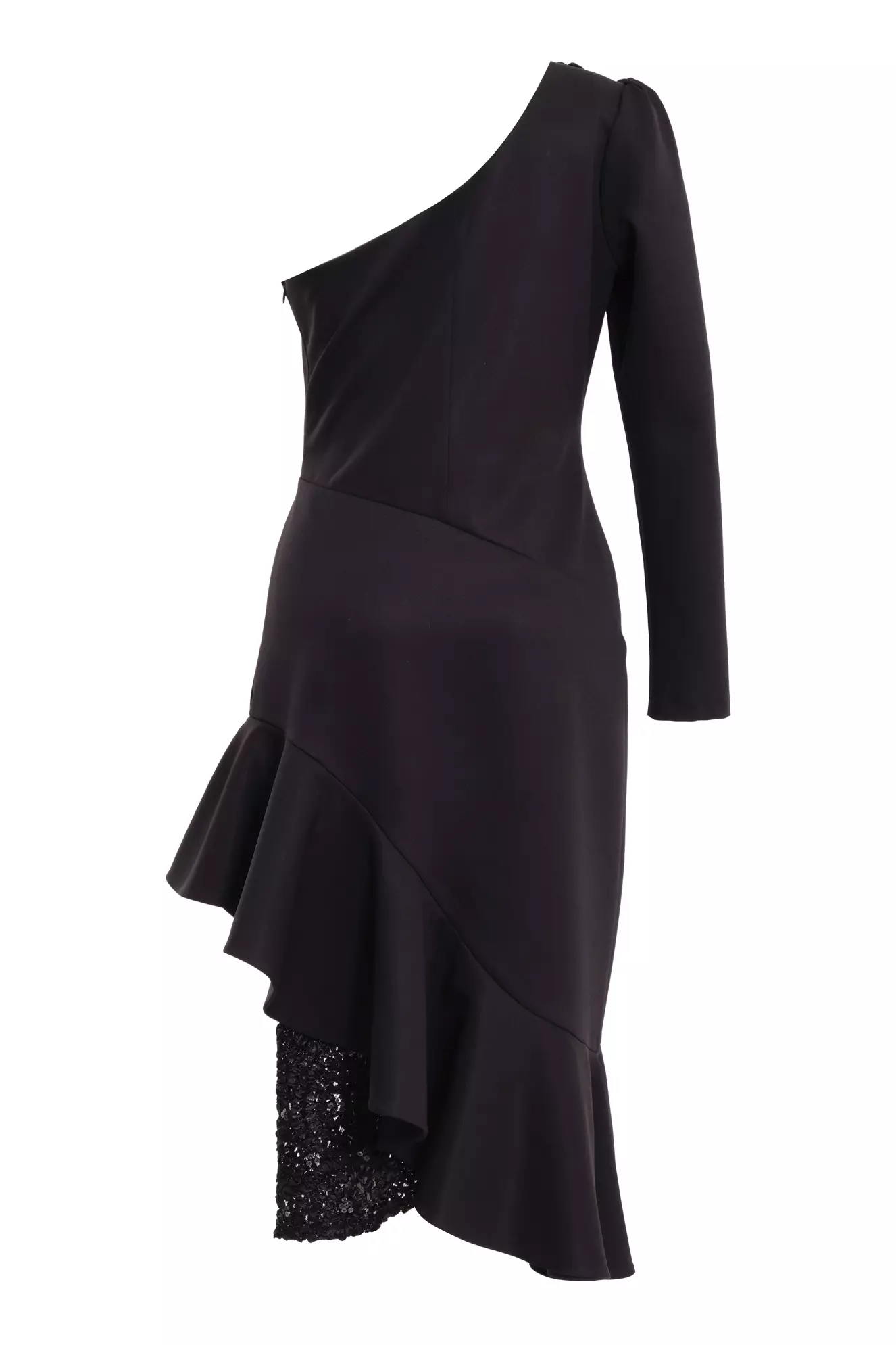Black crepe single sleeve midi dressUnit Code: 78318-001