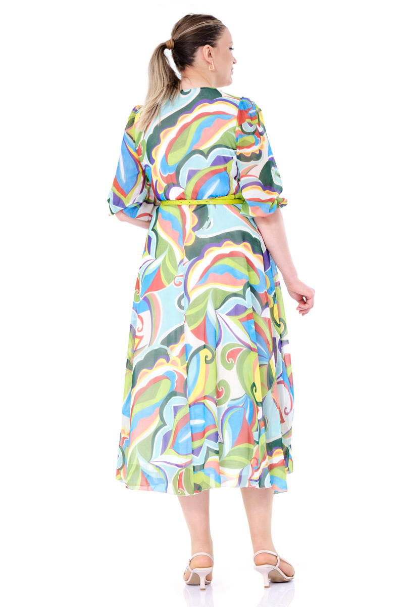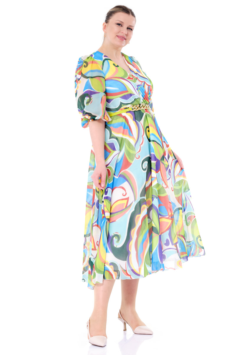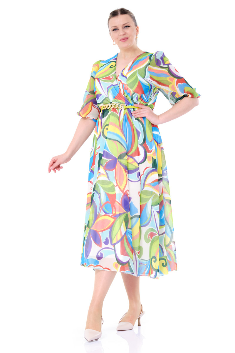 Plus Size Chiffon 3/4 Sleeve Midi Dress