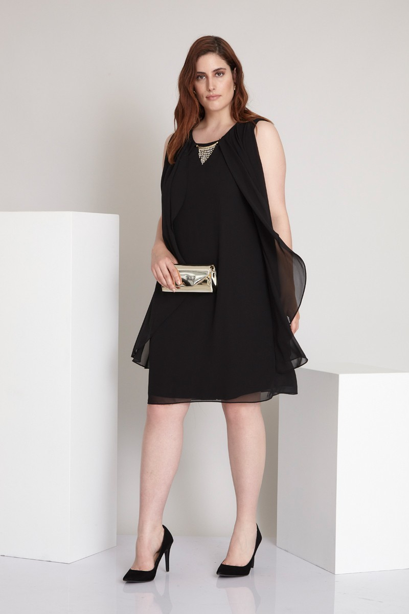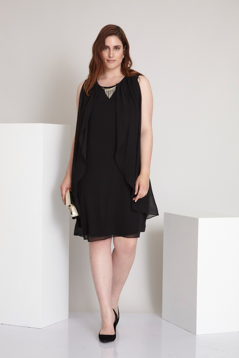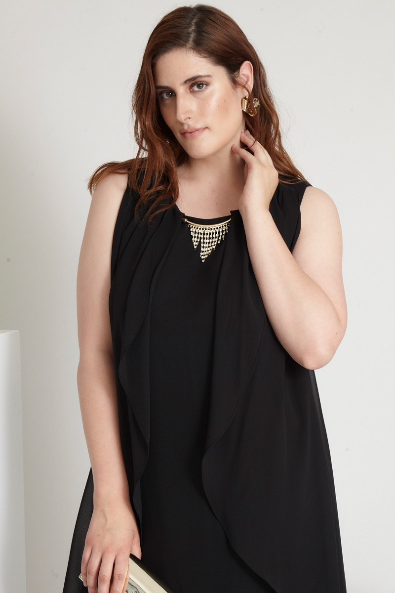 Black Plus Size Chiffon Sleeveless Mini Dress