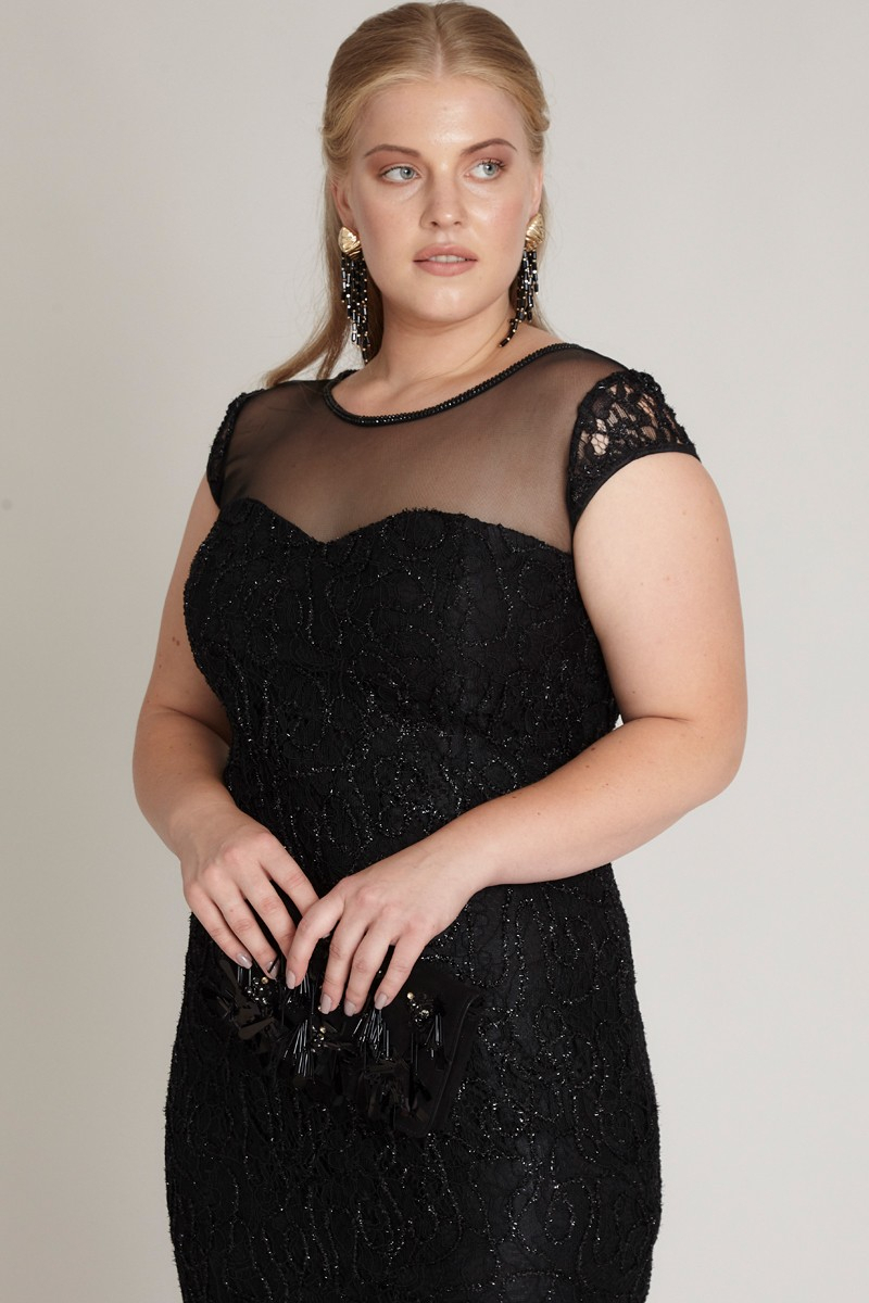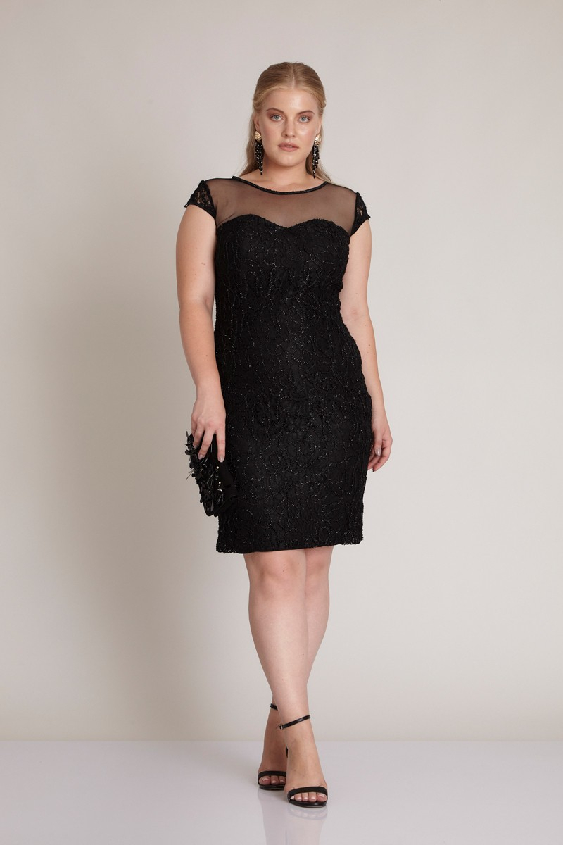 Black Plus Size Lace Short Sleeve Mini Dress