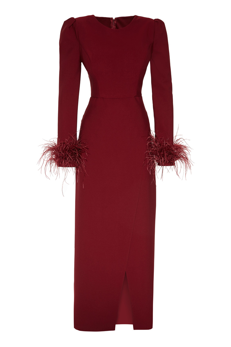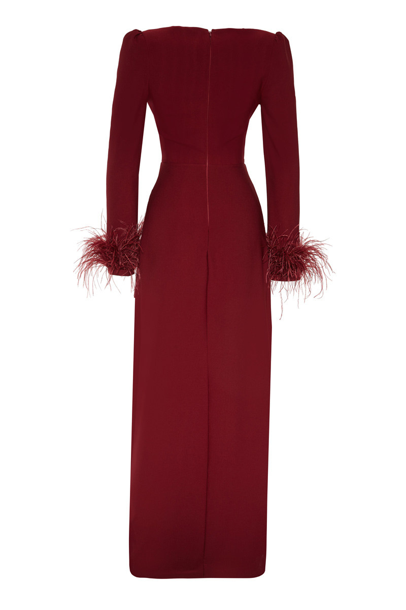 Claret red crepe long sleeve maxi dressUnit Code: 964721-012