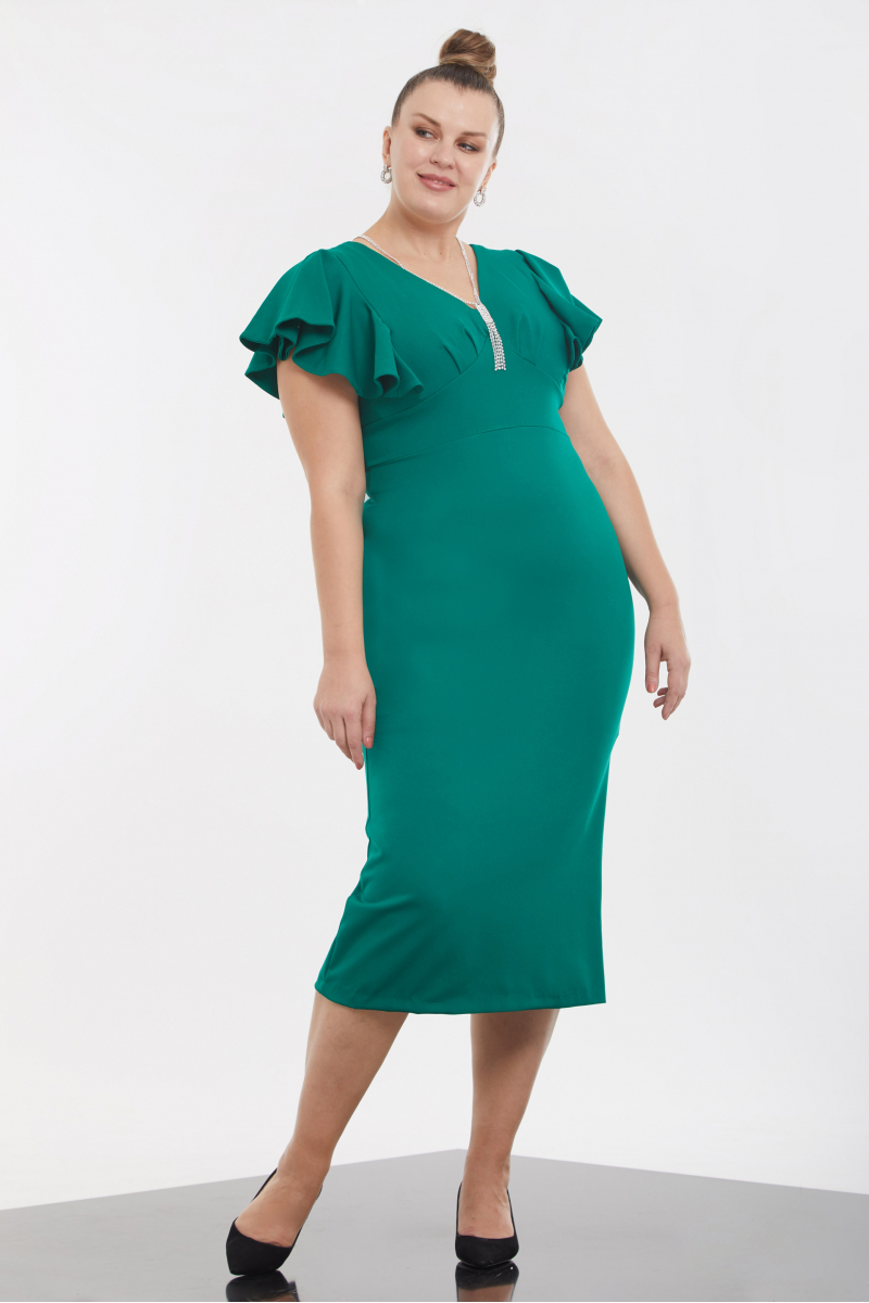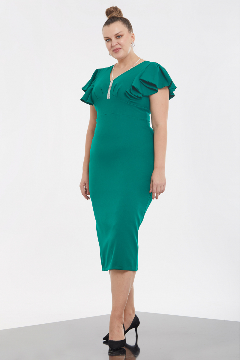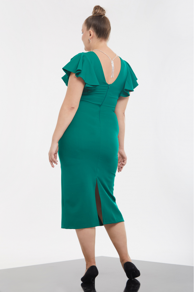 Green Plus Size Crepe Short Sleeve Midi Dress