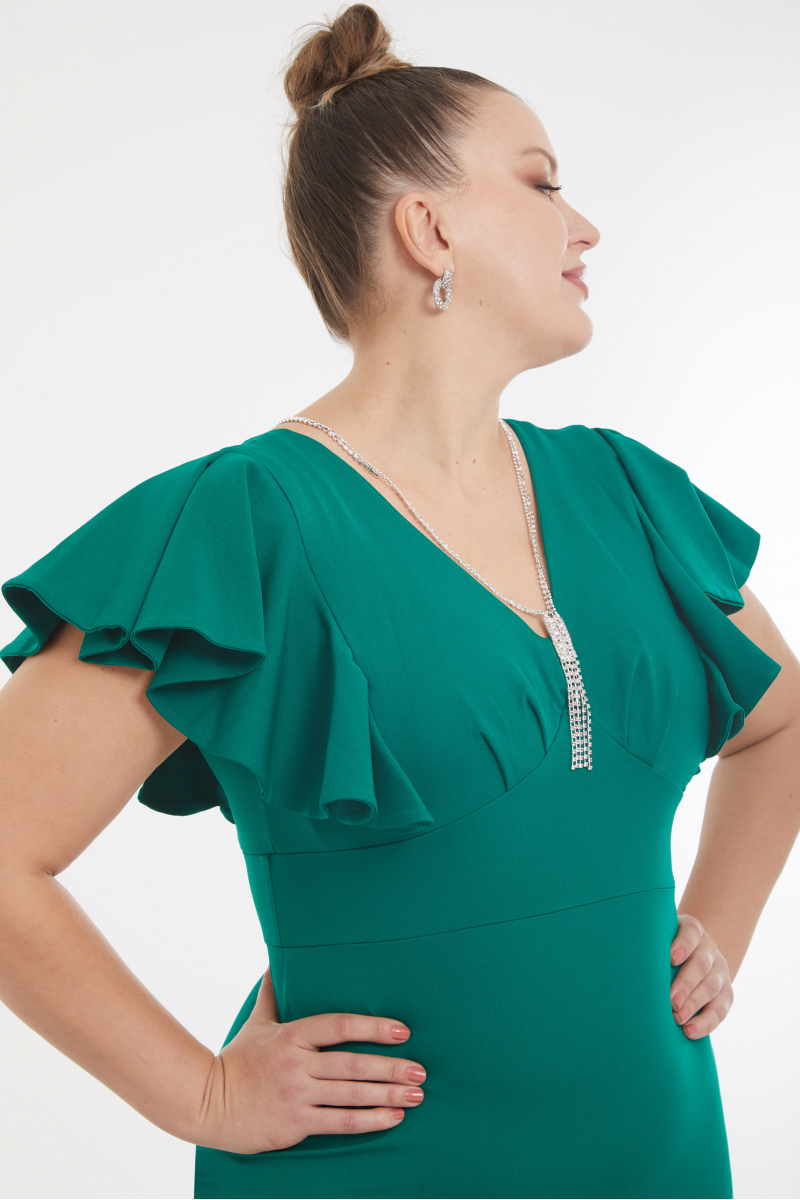 Green plus size crepe short sleeve midi …Unit Code: 76082-006