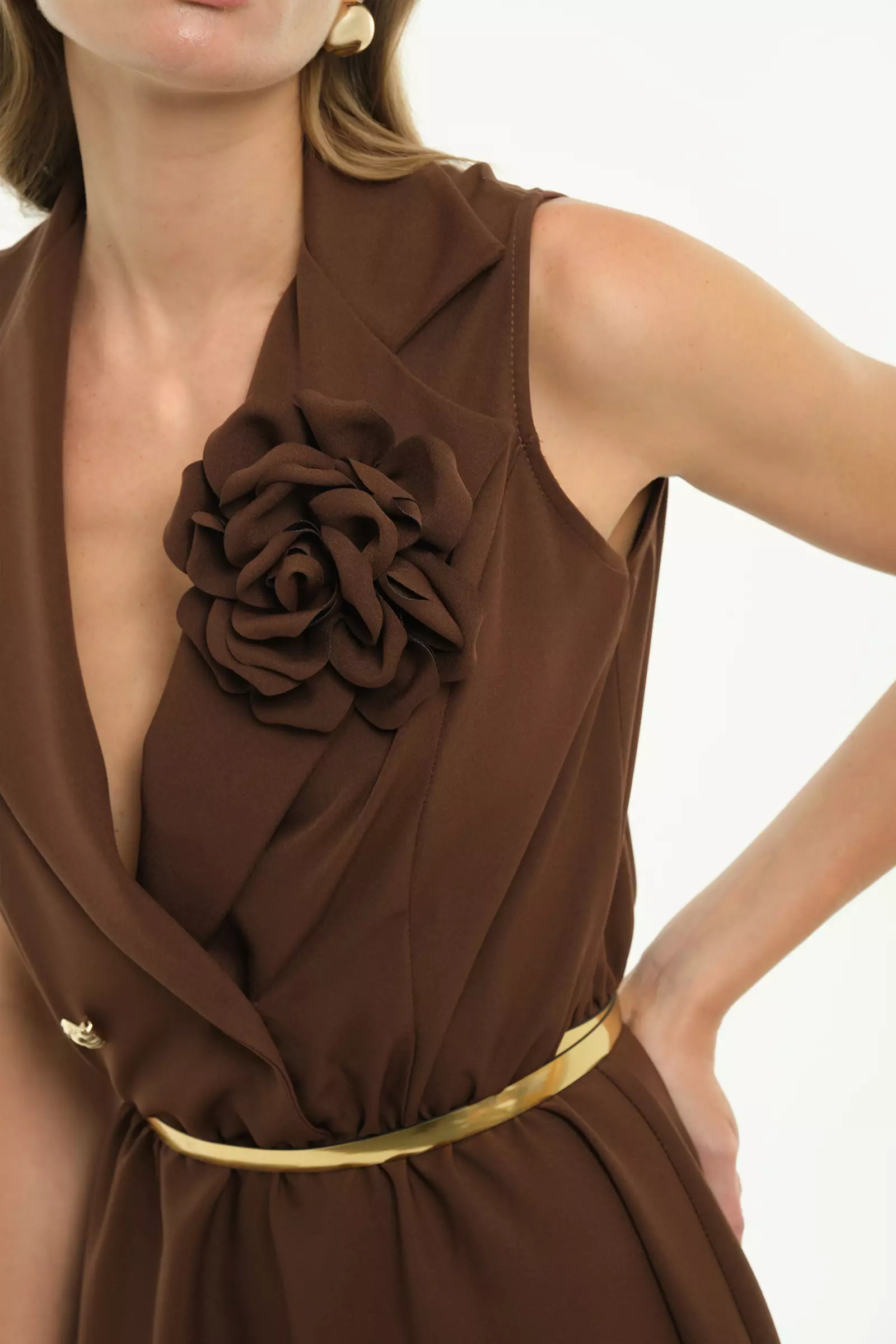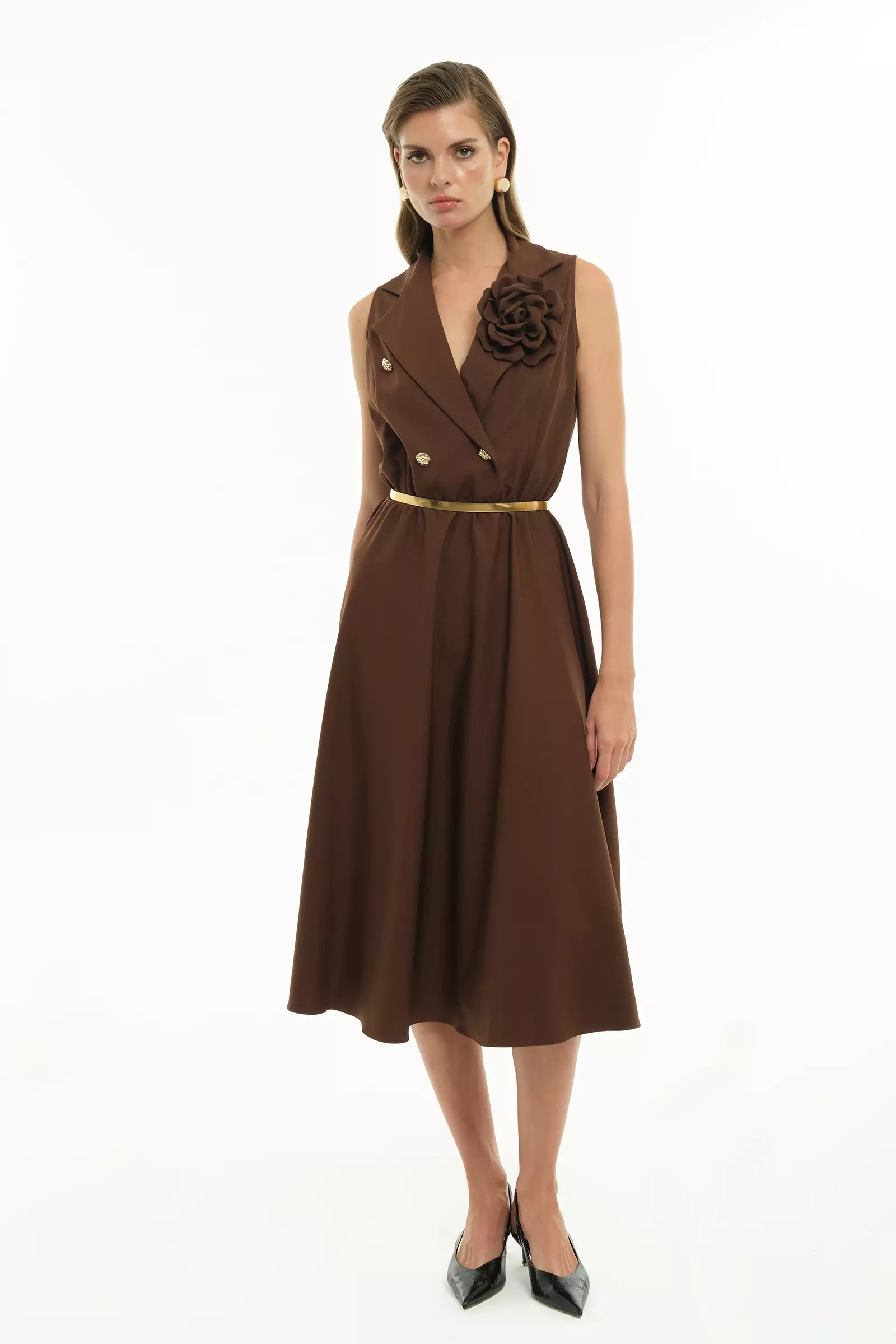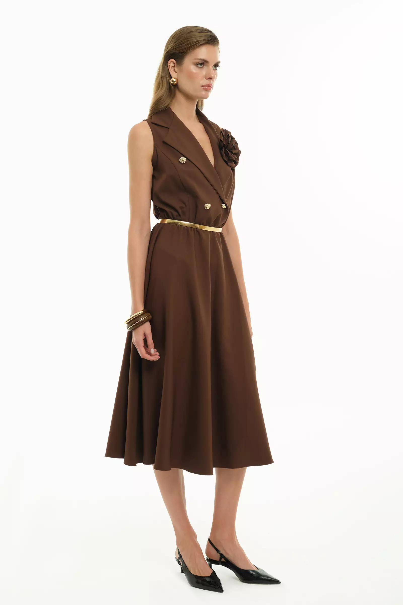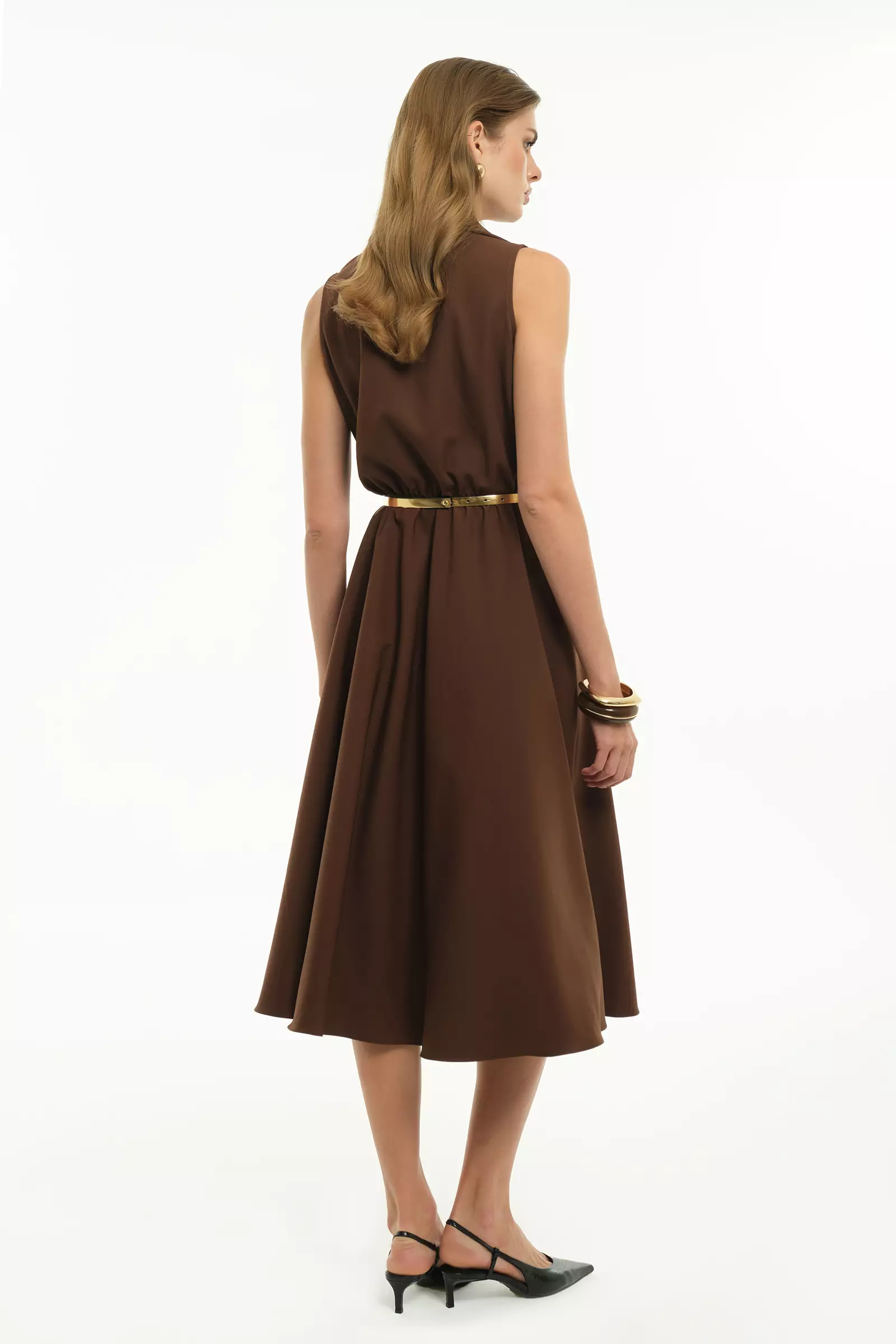 Brown crepe sleeveless midi dressUnit Code: 78108-009
