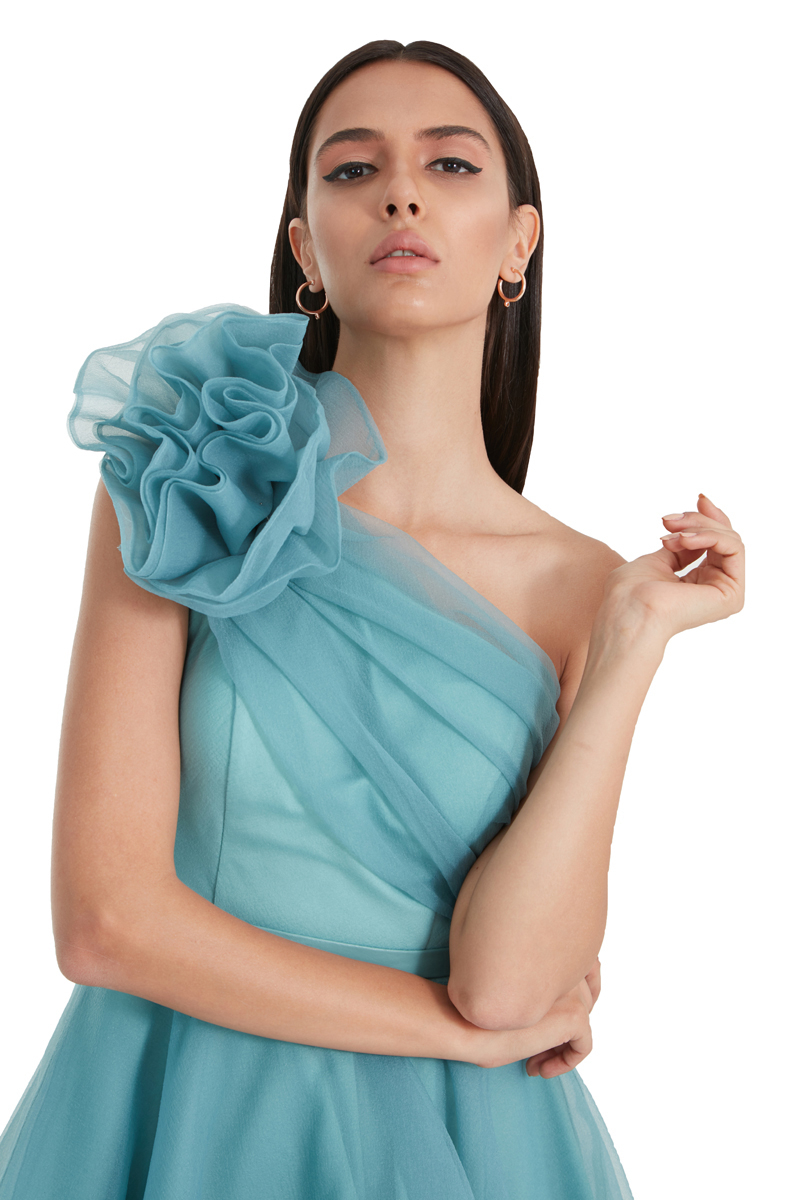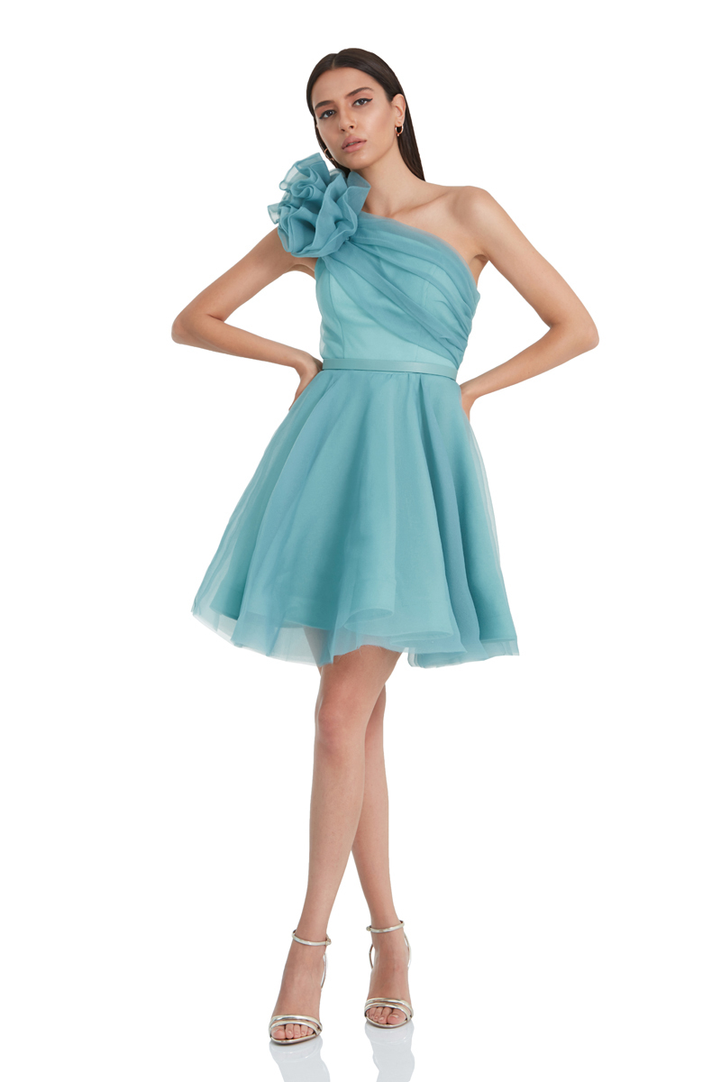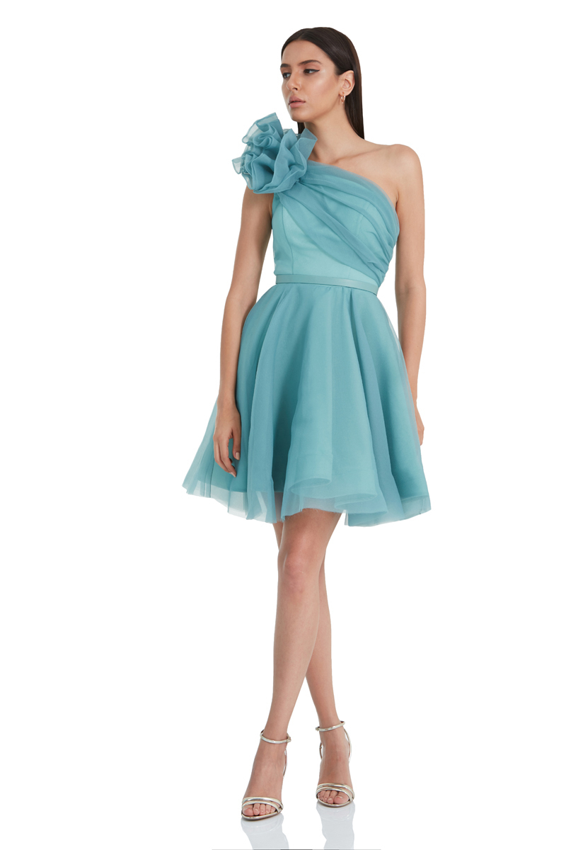 Mint green tulle single sleeve mini dres…Unit Code: 964469-042