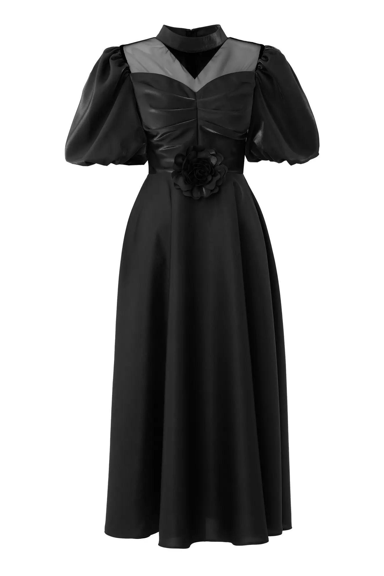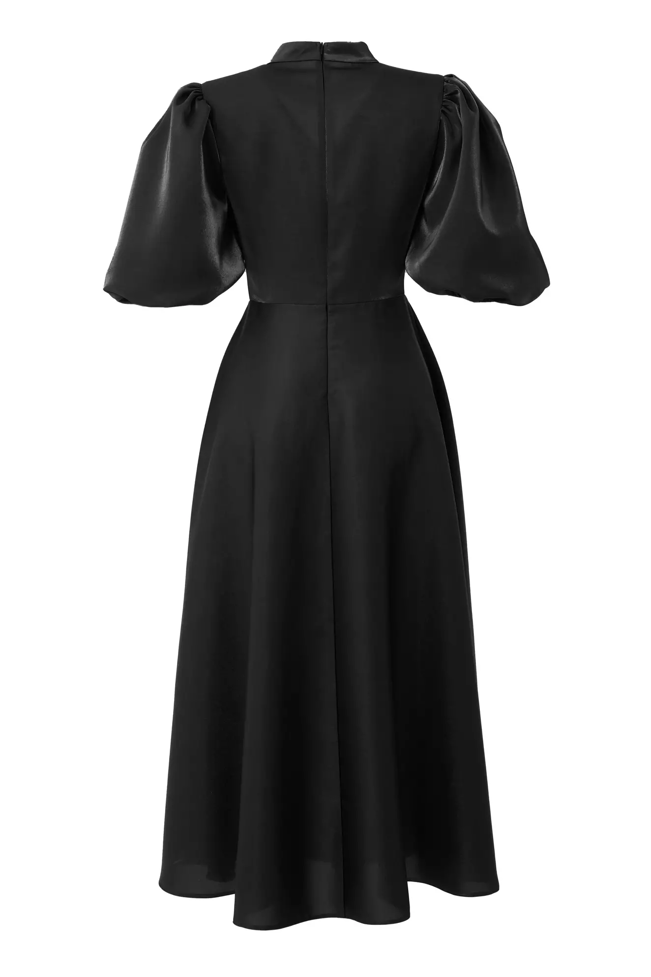 Black satin short sleeve maxi dressUnit Code: 76786-001