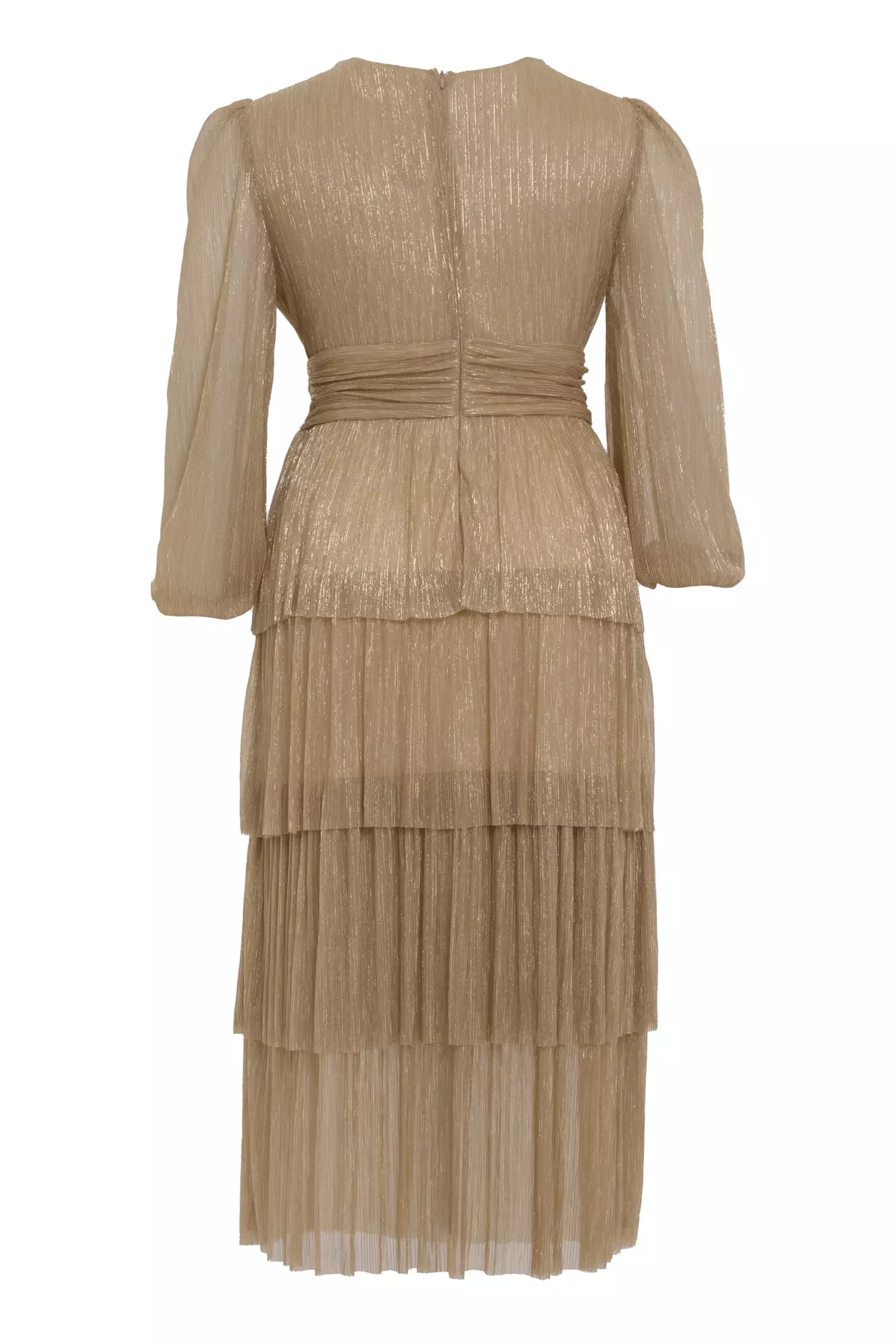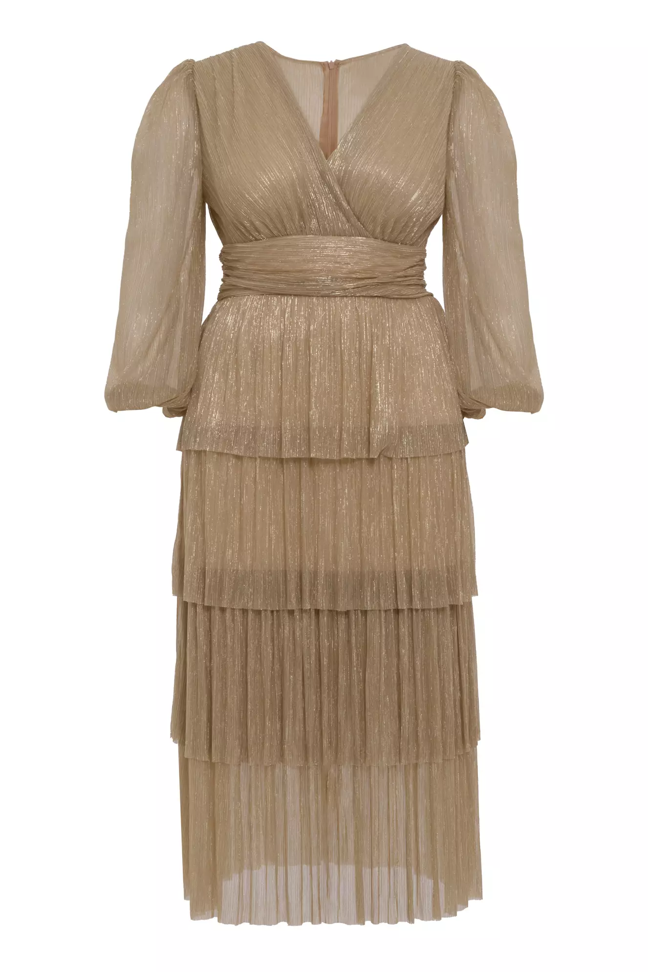 Gold plus size tulle long sleeve maxi dr…Unit Code: 77021-029