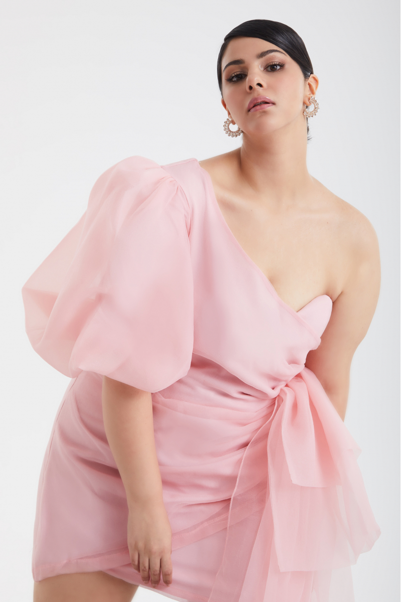 Blush Plus Size Tulle Single Sleeve Mini Dress