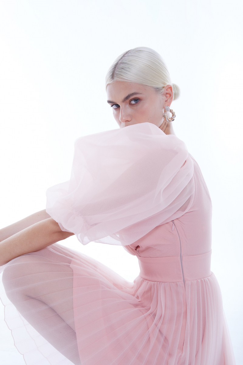 Blush tulle short sleeve mini dressUnit Code: 965184-040