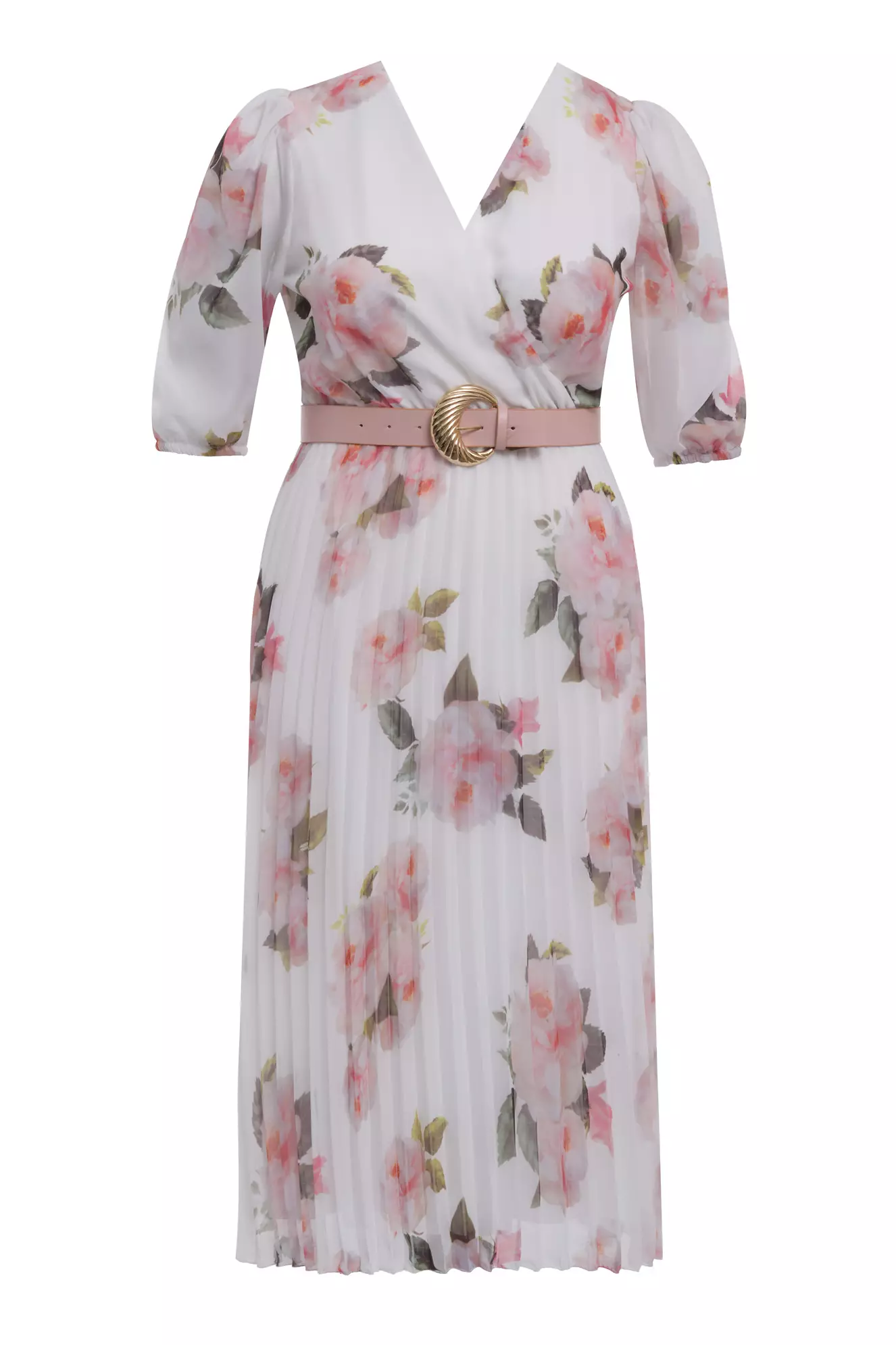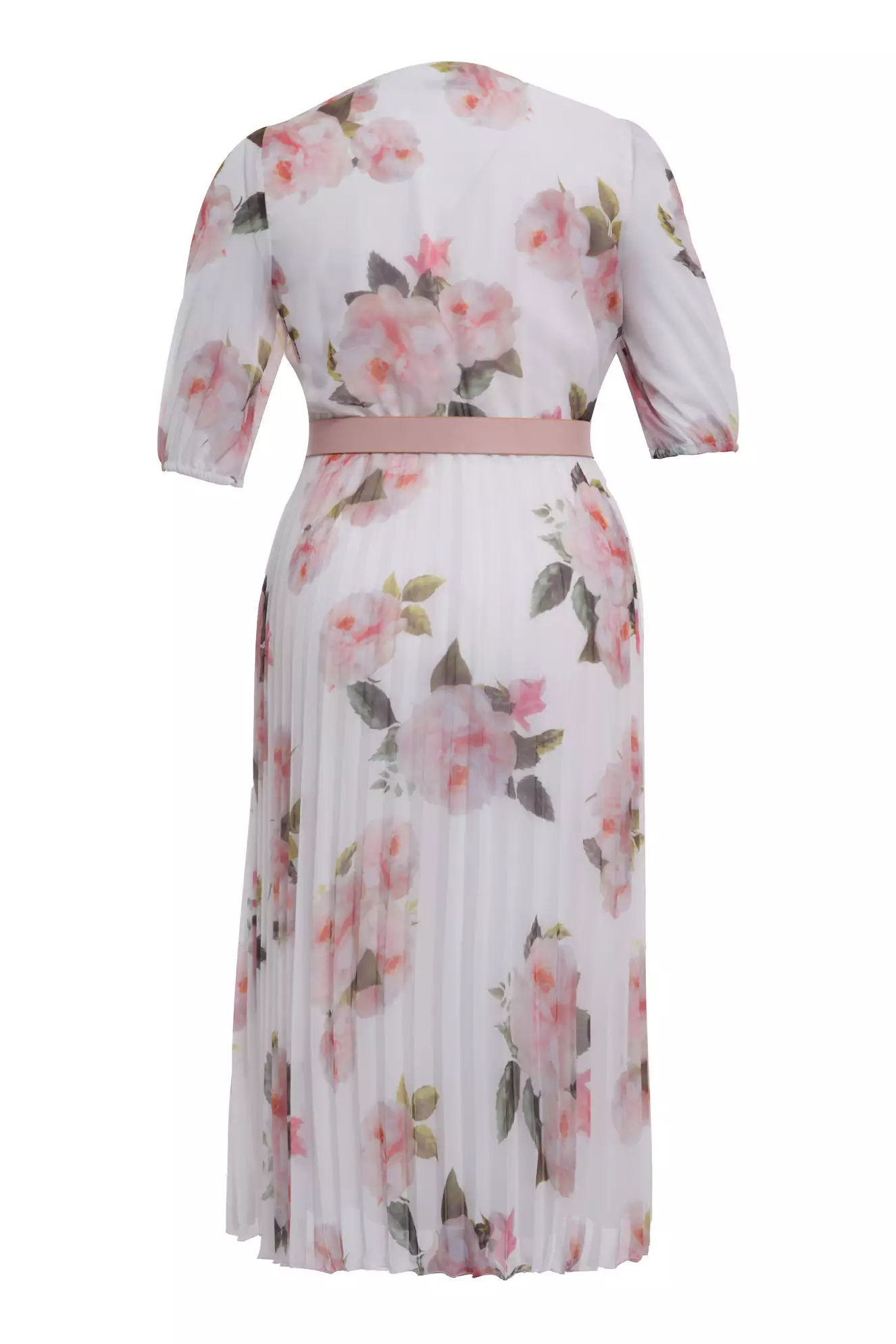 Printed Plus Size Chiffon 3/4 Sleeve Midi Dress