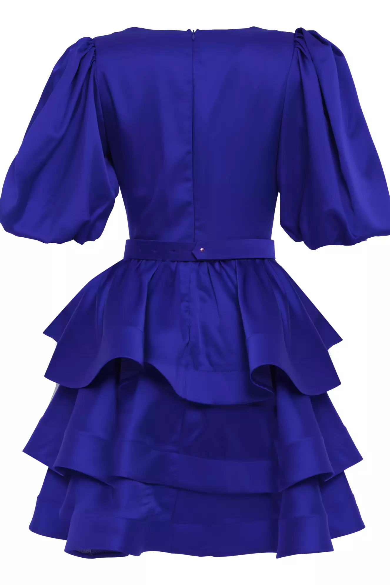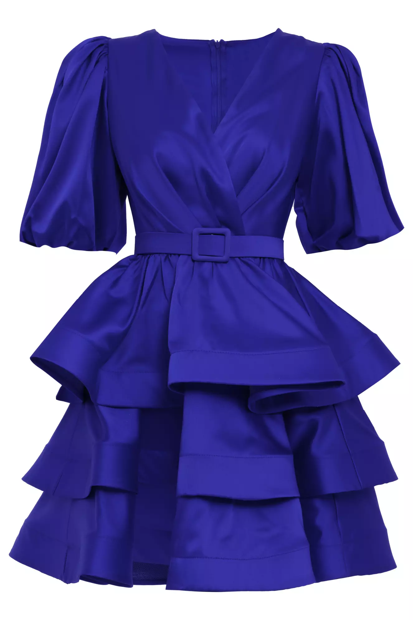 Blue satin capri arm mini dressUnit Code: 965450-036