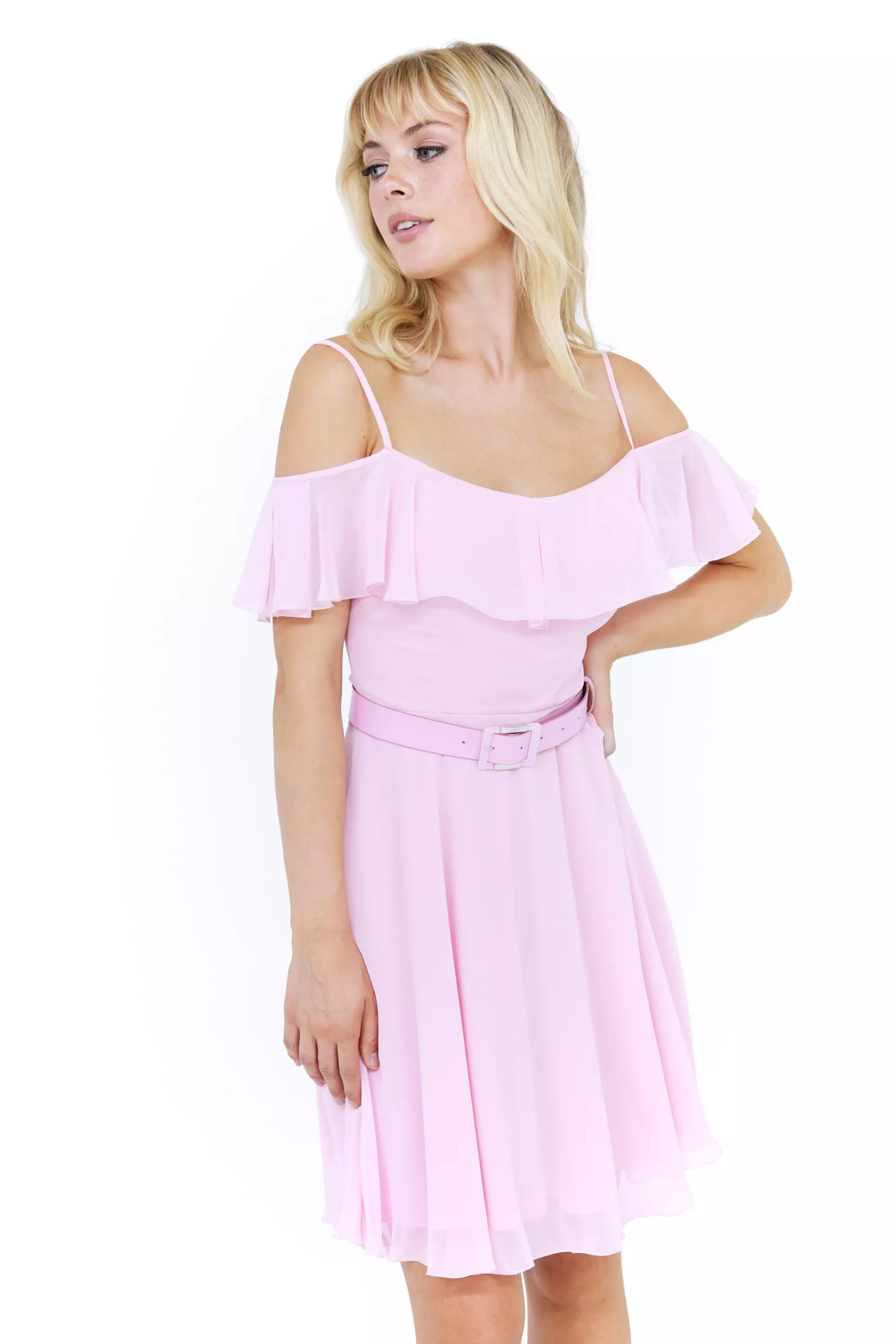 Pink chiffon sleeveless mini dressUnit Code: 77234-046
